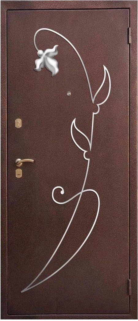 Красивый внешний вид немаловажное, но не самое главное преимущество металлических дверей с элементами ковки. Такие двери еще и очень надежны. Они изготавливаются из холоднокатаной стали толщиной 1,4-2 мм, отделываются массивом, корабельной фанерой, натуральным шпоном или МДФ-панелями, покрытыми виноритом. Установив на нее замки 3 или 4 класса взломостойкости, вы получите дверь, вскрыть которую с помощью грубой силы практически невозможно.