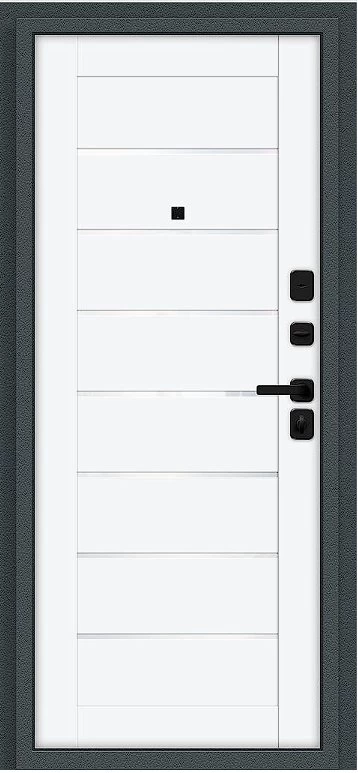 Надежная входная Дверь Браво Техно/SBlack Старк антрацит/White Silk премиум класса по цене 35 621 руб. Большая толщина стали защитит от проникновения в ваш дом, квартиру или коттедж. Используется очень качественная фурнитура: замки, цилиндры, ручки, защелки. Покрытие и отделка двери изготовлено под внимательным контролем производителя. Дверь имеет долгий срок службы и гарантию.
